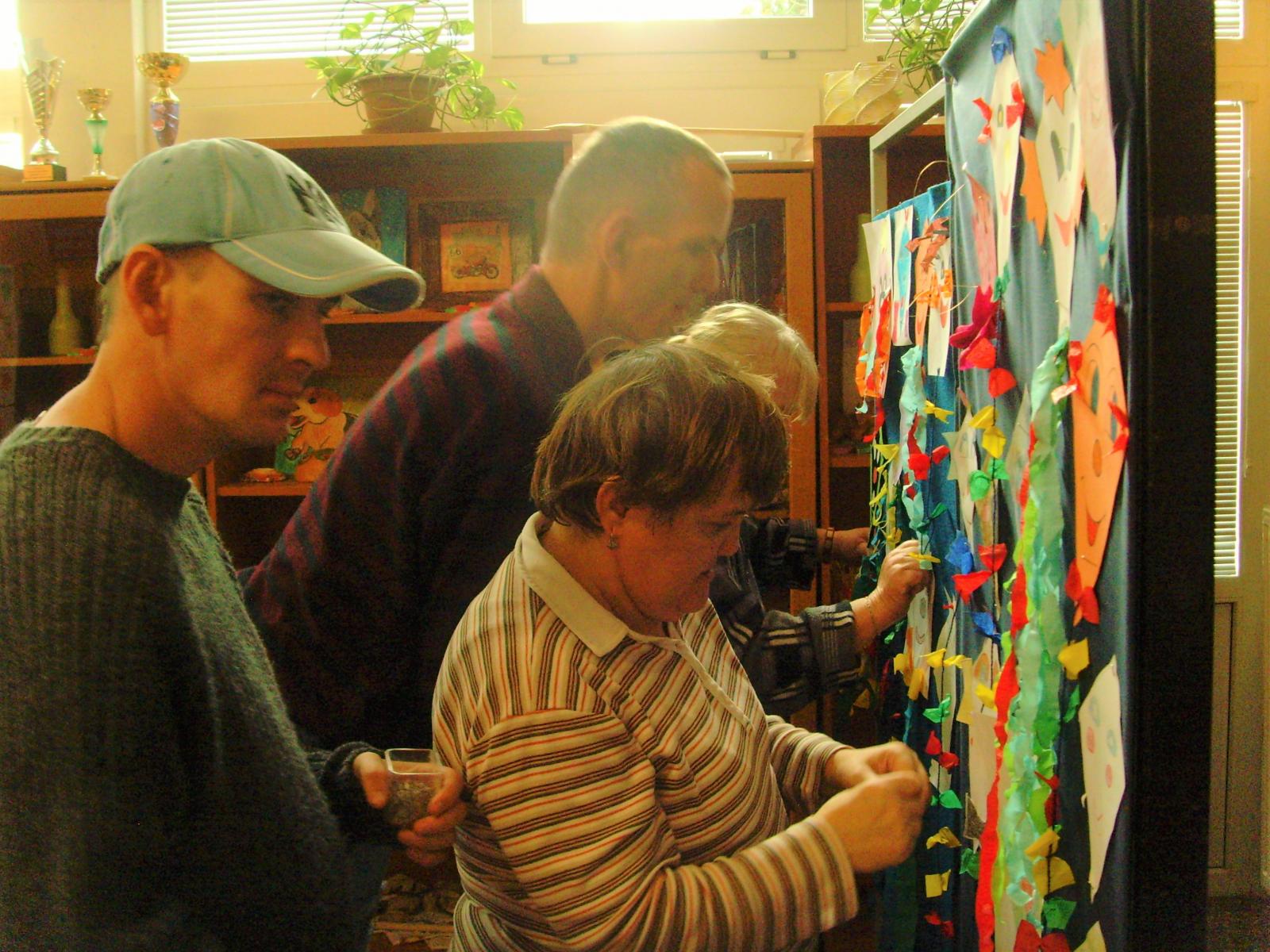 v zariadení sme si usporiadali Šarkaniádu. Na výrobe šarkanov sa podieľali klienti, terapeuti a službukonajúci personál. Hoci sme vzhľadom na poveternostné podmienky púšťanie šarkanov museli odložiť na inokedy, z hotových šarkanov mali veľkú radosť.
